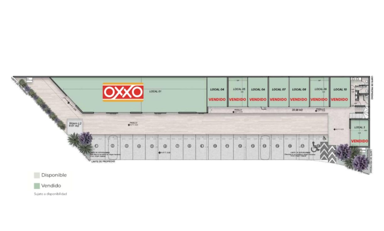 Plaza comercial de 941.50 m2 con locales comerciales desde 22.41 m2, desde $1’408,680*.